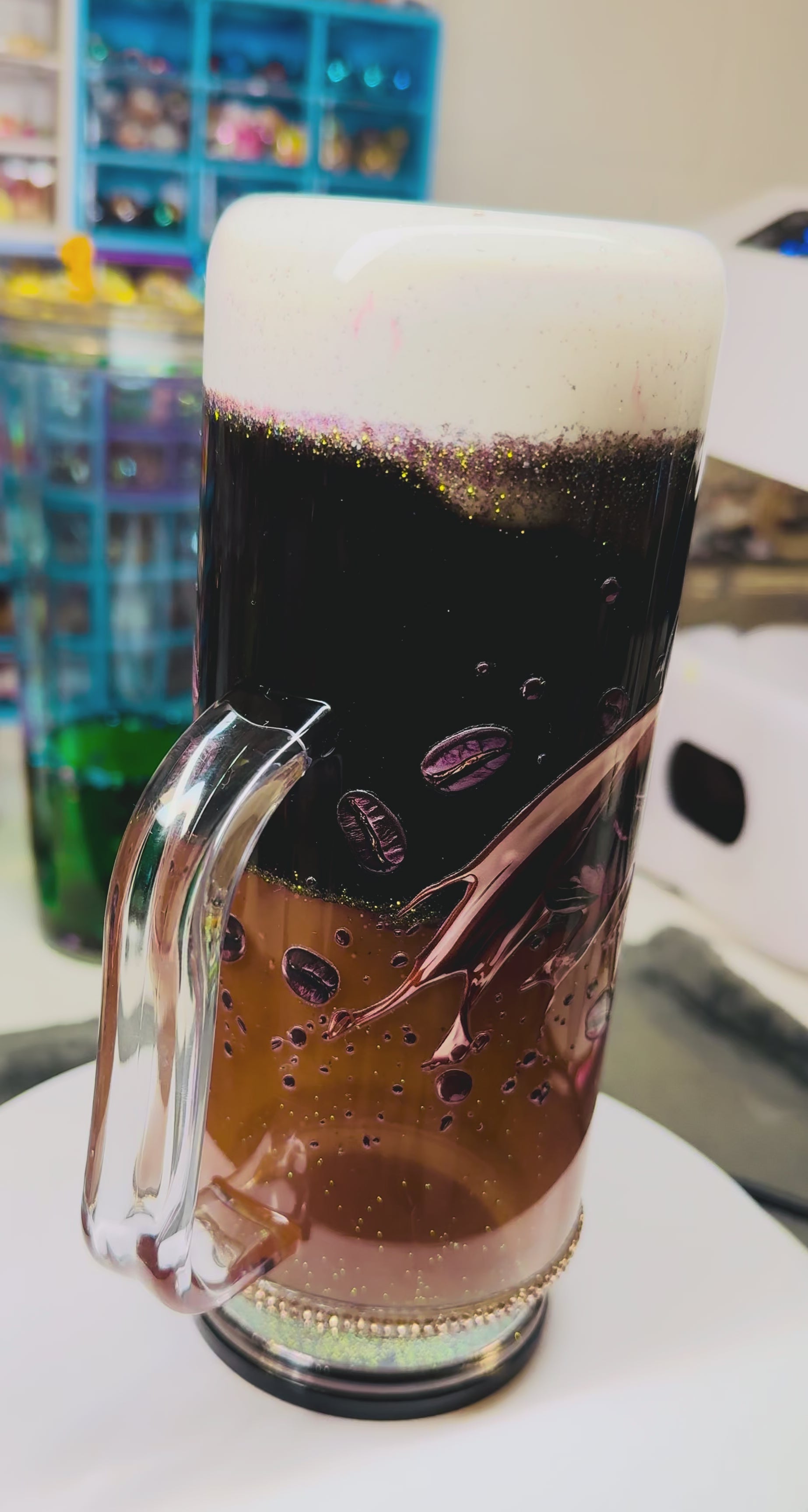 Snowglobe Becher mit Henkel . 3 Farben Lava , mit Sticker